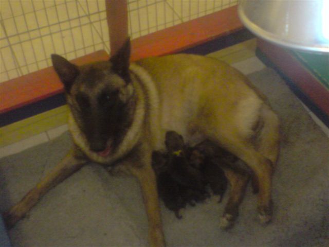 1ere portee bandidas et titane bandidas queleque jours avant de mettre bas bandidas et etthen(8 mois) à montpellier 2010 ça y est les bébés sont là nous voici tous ensembles